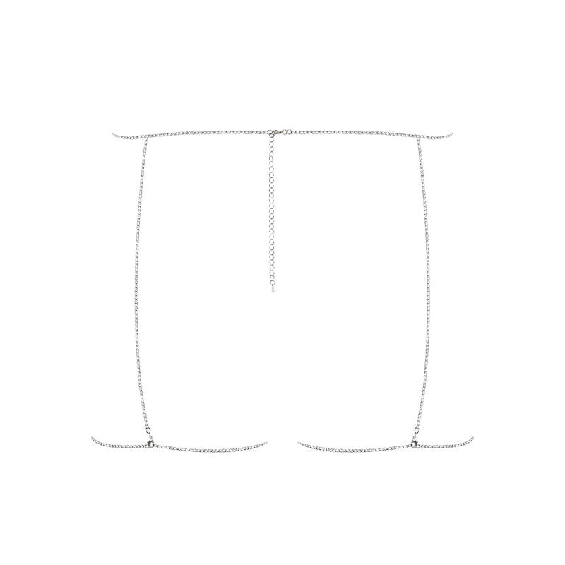The perfect choice! Your legs will be a focal point from now on. Try to warm up the atmosphere before your partner sees you. In the morning, tell him a very sexy surprise awaits him tonight. He'll be waiting all day. At night, he'll see your incredible legs shining thanks to this silver harness. You'll love this style.
