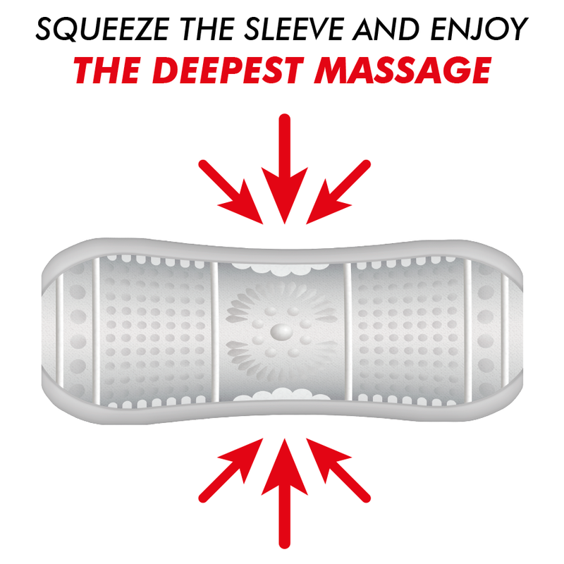 - Pour plus de sensations, pressez le manchon du masturbateur.