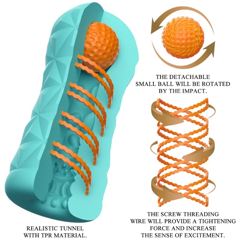Un petit outil pour une masturbation intense ! Ce masturbateur transparent et réutilisable est doté d'une spirale rotative et d'une bille de stimulation latérale. La spirale rotative fait tourner le masturbateur pendant la pénétration, tandis que la bille supérieure stimule le point idéal et vous procure une sensation inédite. Le manchon présente une texture stimulante et excitante qui masse le pénis intensément et dynamiquement pendant les rapports sexuels. Vous pouvez utiliser ce masturbateur élégant et doux pour la peau à l'infini. Très facile à utiliser, un pur plaisir !