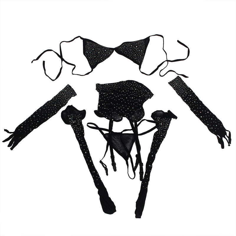 SUBBLIME - 952174 Body résille avec gants et diamants, noir, taille unique